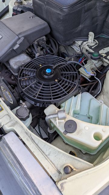 こうなったら電動ファンを追加してエンジンルーム内の